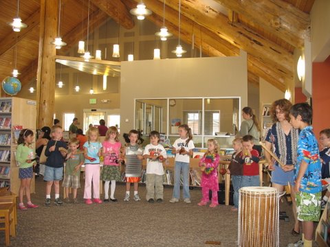 Leading a "bug band" at the Grand Lake Library. Bzzzzz... |